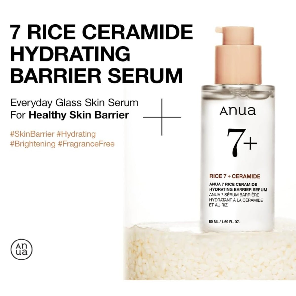 – Nourishing fragrance-free serum, formulated with rice bran water (Oryza Sativa) and ceramide NP, to hydrate dry skin and prevent moisture loss, while maintaining skin elasticity and barrier function.