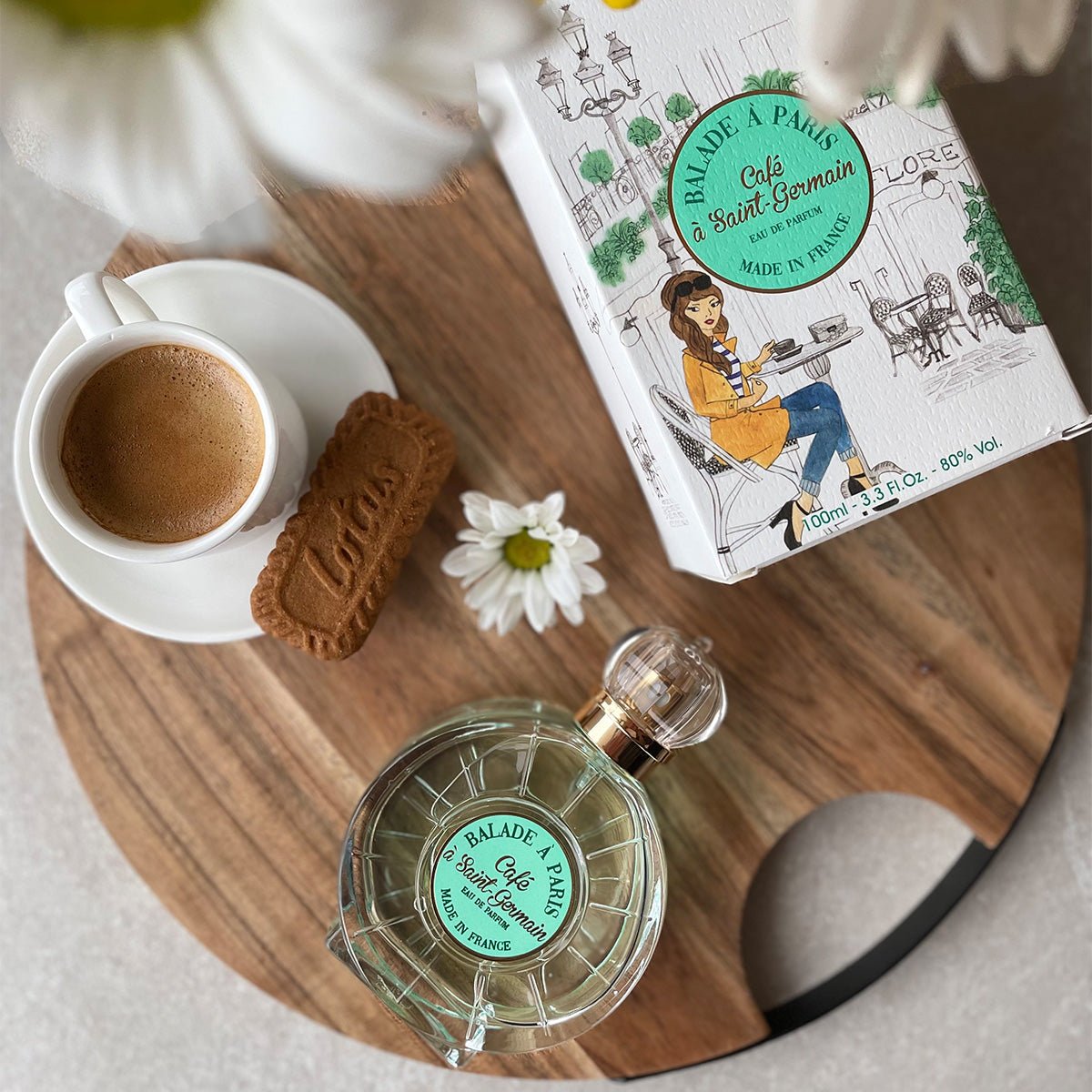 The Eau de Parfum Café à Saint-Germain evokes the sweet atmosphere of Parisian terraces, where the morning light mingles with the warm and indulgent aromas of freshly brewed coffee. With each breath, one feels as if strolling on the cobblestones of Paris, savoring a delicate and pleasant moment. The fragrance gently envelops the skin, bringing warmth and elegance, blending softness and character to create a unique and enchanting sensory experience. To fully enjoy the fragrance throughout the day, spray the Eau de Parfum on pulse points: neck, nape, behind the ears, décolleté, and wrists. A fragrance that transforms every moment into a delightful and luminous Parisian interlude.