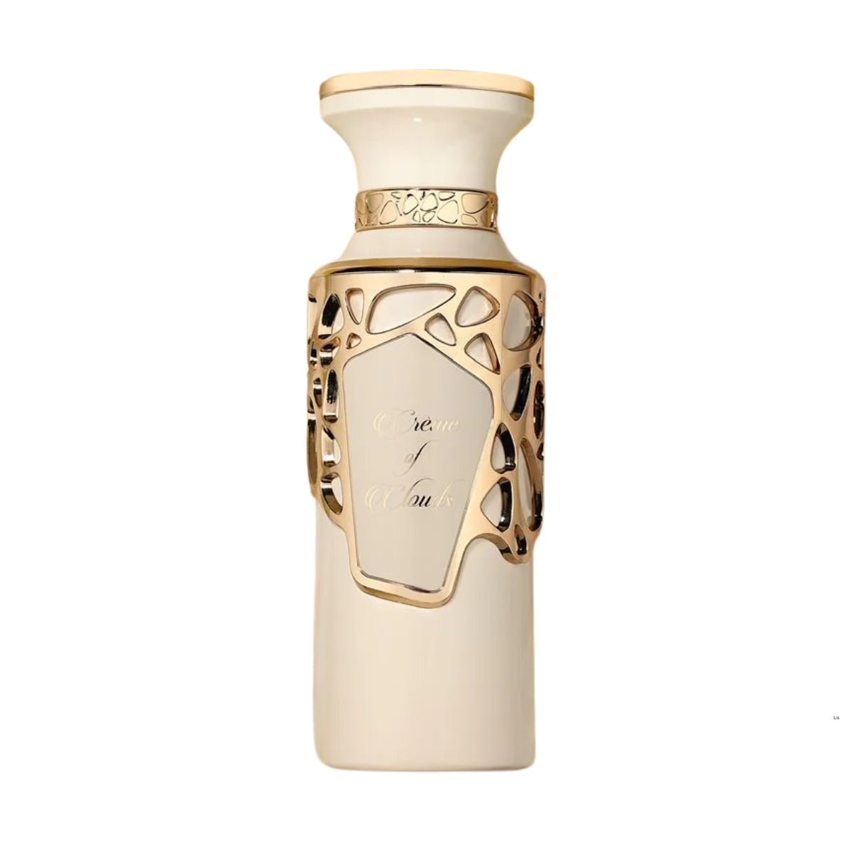 Creme of Clouds by Fragrance World is a soft, creamy, and delightfully sweet eau de parfum, perfect for those seeking a warm and gourmand scent. Ideal for occasions when you want to be enveloped in a luxurious, comforting, and enchanting fragrance. It inspires a feeling of absolute comfort, with notes of creamy coconut, sweet vanilla, and caramelized sugar. Perfect for cool days or to add a soft and elegant touch to your daily routine. Its airy and gourmand trail leaves a soft and addictive imprint, like a cloud of sweetness on the skin. A fragrance that elegantly combines sophistication and gourmand notes with finesse, for those who enjoy feeling effortlessly enchanting.