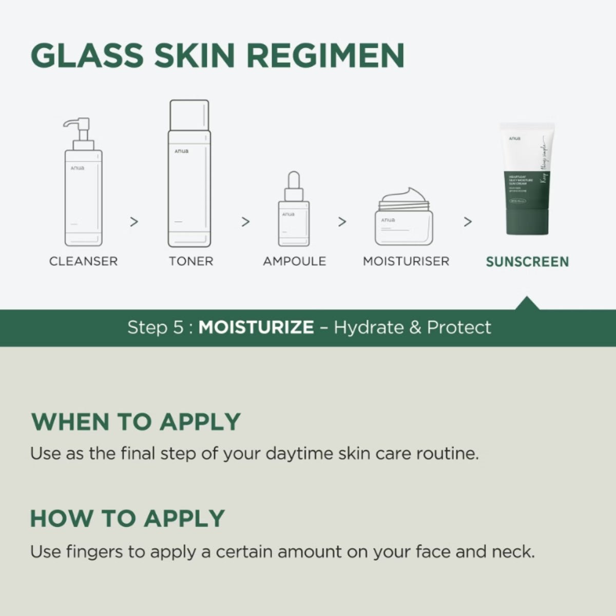 1. Apply at the final step of your skincare routine, 15 minutes before going outdoors.