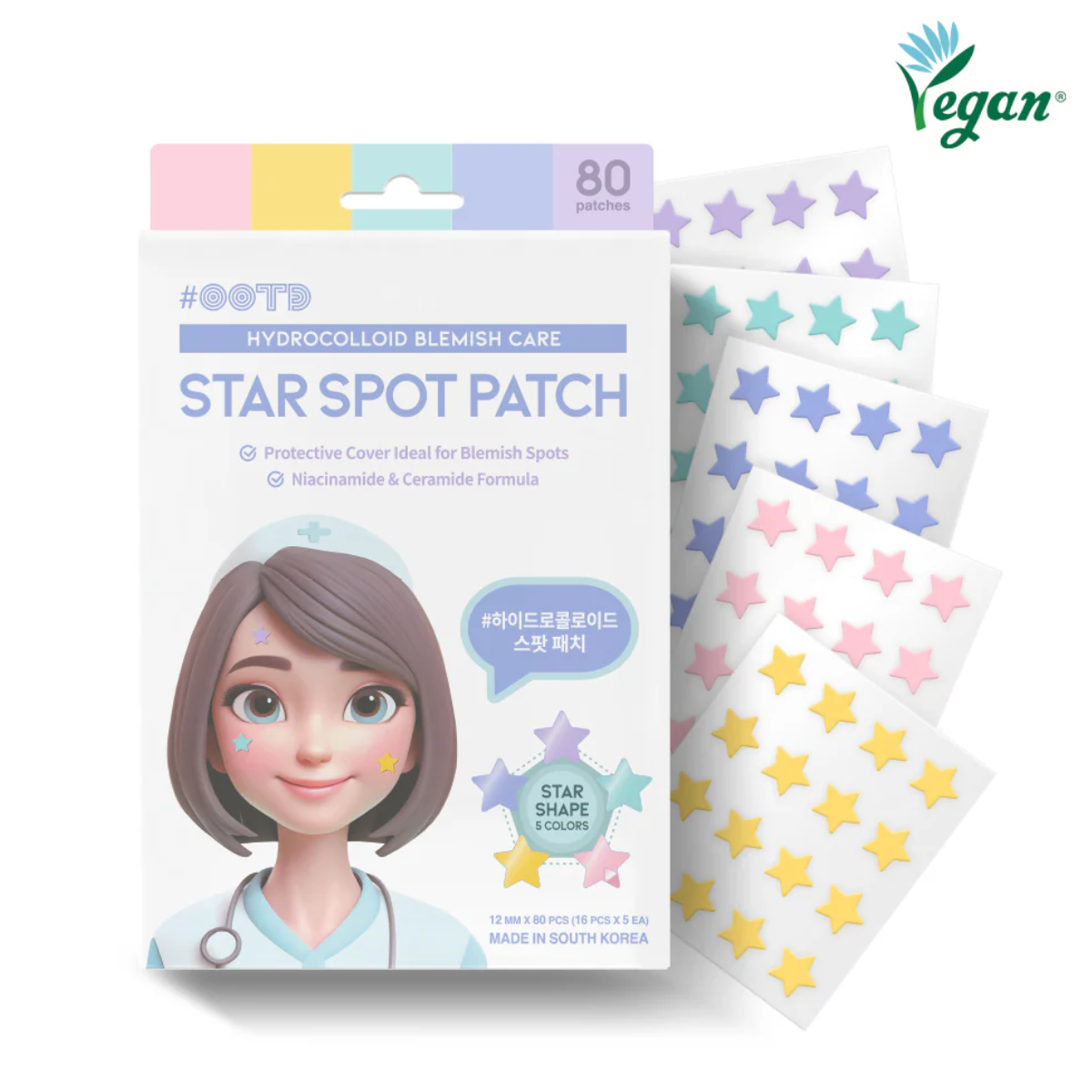 Say goodbye to blemishes and let your skin repair overnight. ✨ Hydrocolloid star-shaped patches, each box contains 80 patches available in 5 fun colors, providing a soothing treatment for blemishes. The star design, together with niacinamide, ceramide, and the high-performance hydrocolloid, helps improve the appearance of blemishes overnight without piercing the skin, protects the skin, promotes healing, and effectively helps prevent scarring. Simply apply it, sleep soundly, and wake up with clearer skin and a visibly improved complexion. ✨