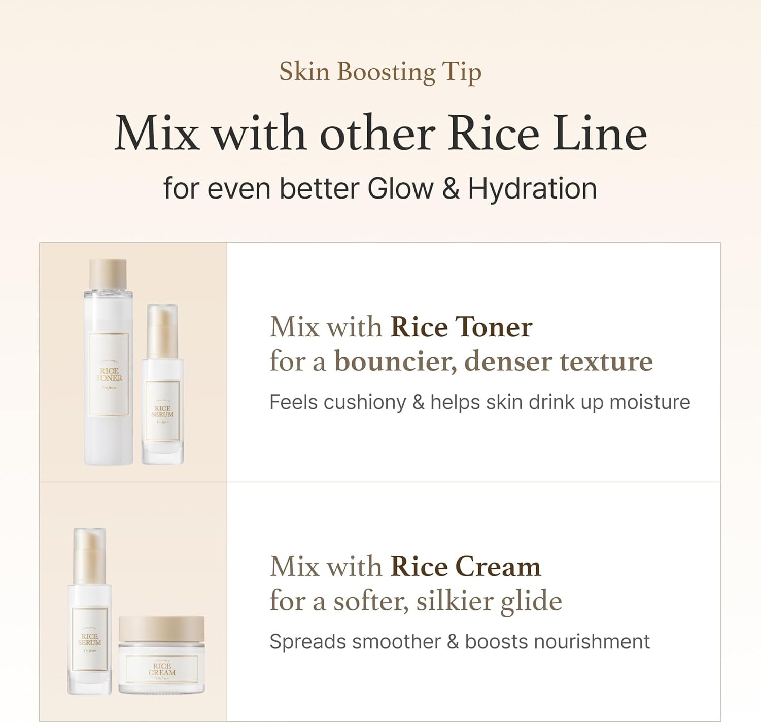 Illuminate and hydrate your skin with this double-action vegan serum enriched with rice germ extract! It absorbs quickly for instant radiance and long-lasting nourishment. Benefits and advantages: – This brightening, illuminating, and hydrating serum is formulated with 73% rice germ ferment extract. – Offers a vegan formulation and clean beauty. – Its formula, enriched with rice, provides intense hydration and enhances the skin with a natural radiance. – Thanks to niacinamide, this serum refines the skin texture, reduces the appearance of imperfections and brightens the complexion. – It absorbs instantly and provides a fresh, non-greasy finish, for a visibly more even and luminous complexion.