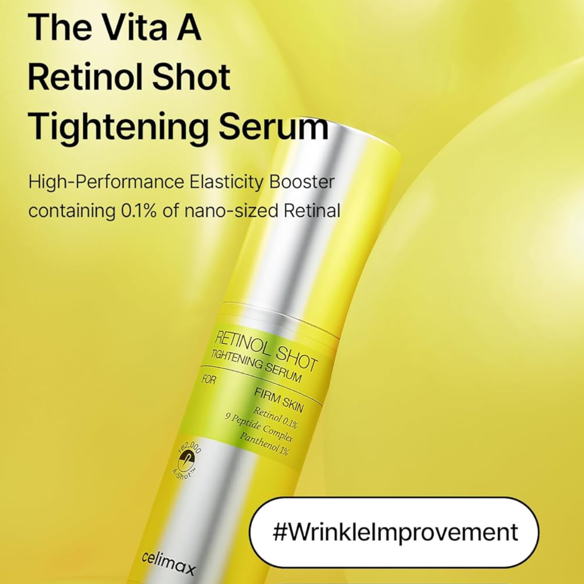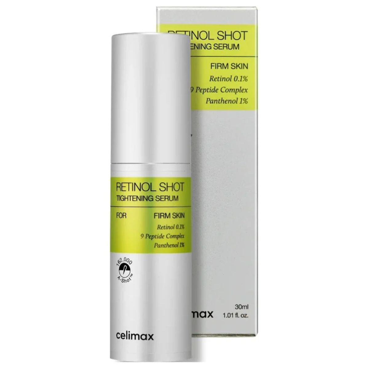 Discover Celimax – Retinol Firming Serum 30ml, a formula that helps target visible signs of aging. With a concentration of 0.1% pure retinol combined with a complex of nine peptides, this serum supports skin elasticity, smooths fine lines and texture, and reduces the appearance of pores. Featuring A-Shot™ technology, the serum contains 162,000 ultra-fine microparticles, sixteen times smaller than pores, allowing active ingredients to penetrate deeply where the skin needs it most. The peptide-rich formula helps to firm the skin and restore a more toned and sculpted appearance with regular use. Enriched with panthenol, vitamin E, carrot root extract, and allantoin, this treatment helps soothe the skin and reduce dryness or sensitivity often associated with retinol. Its lightweight texture is designed to be gentle and comfortable upon application.