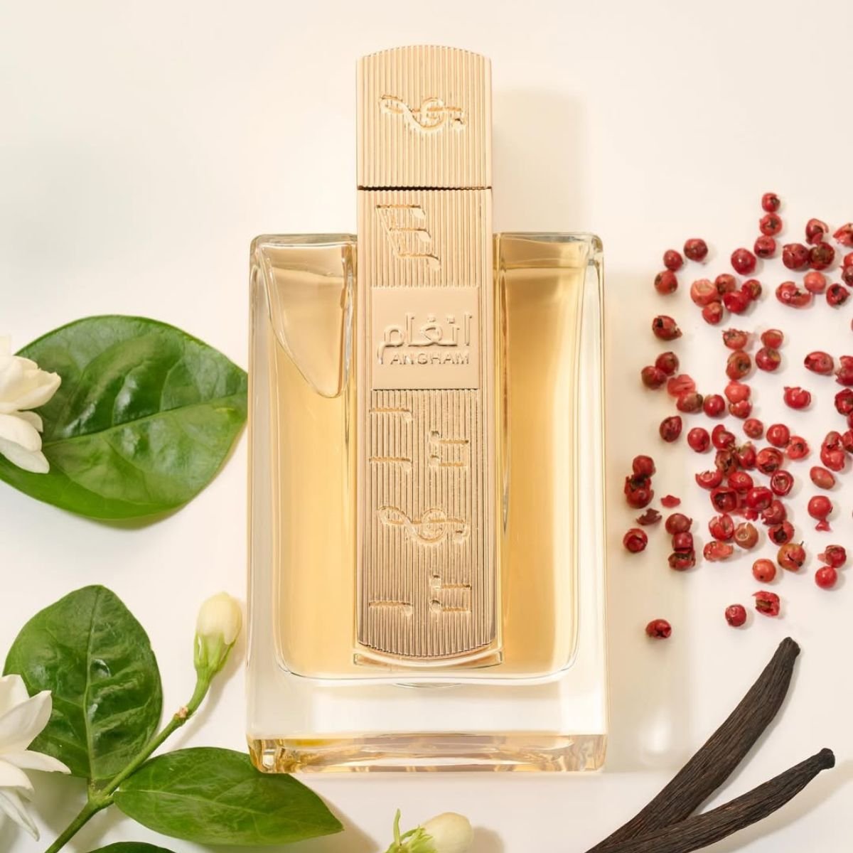 Angham de Lattafa est une fragrance sophistiquée et enveloppante. Elle s’ouvre sur une explosion d’épices fraîches avec du gingembre, de la mandarine et du poivre rose. Son cœur révèle un mélange gourmand et floral de lavande, praliné, cacao et jasmin. En fond, la vanille, l’ambre et le musc apportent une chaleur sensuelle et profonde, offrant une expérience olfactive riche et équilibrée. ✨