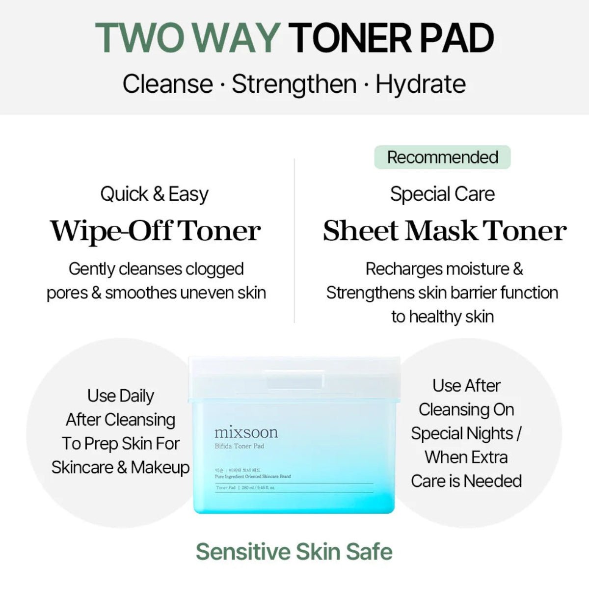 Bienfaits : – Disques toniques hydratants enrichis en ingrédients fermentés à base de bifida, pour rétablir l’équilibre naturel eau-sébium de la peau. – Contient 4 types d’ingrédients fermentés, dont le lysat de ferment de Bifida, le lysat de ferment de Lactobacillus et le ferment de Streptococcus Thermophilus, qui réparent la barrière cutanée altérée et rééquilibrent la peau. – Formulé avec 3 types d’acides hyaluroniques, associés au panthénol, à la céramide NP et à l’huile de graines de Limnanthes Alba (meadowfoam) pour une hydratation intense et la formation d’une barrière protectrice. – Structure triple couche (rayonne – pulpe – rayonne) pour une excellente absorption de l’essence. – Les disques peuvent être déchirés en deux pour une application ciblée sur différentes zones.