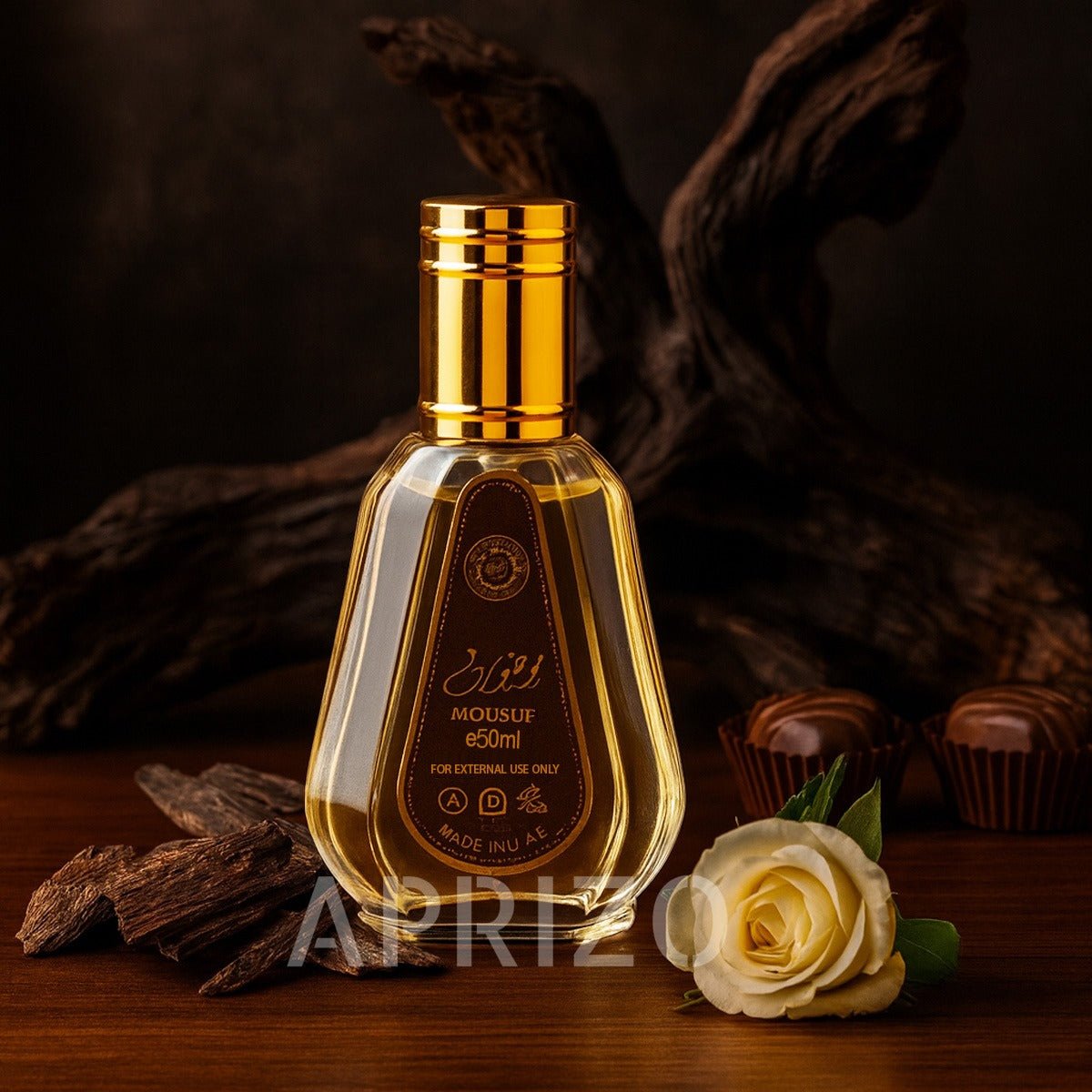 Mousuf est une fragrance unisexe aux accents suaves et élégants, idéale pour ceux qui recherchent une alliance subtile entre gourmandise chocolatée et profondeur boisée. ✨