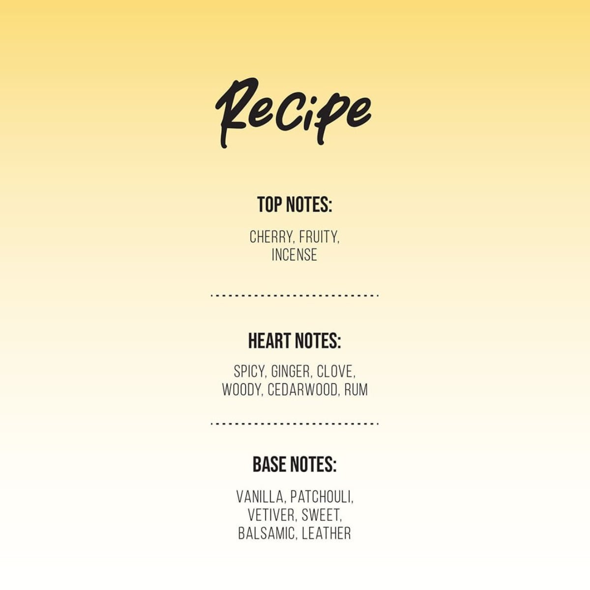 Note de coeur : Épicé, gingembre, clou de girofle, boisé, bois de cèdre, rhum